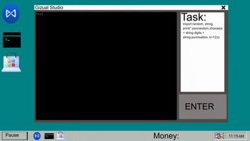 Today, a new application "Gizual Studio" was created, where programming itself will take place, you will be given a task, and your task is to write code, but do not be afraid, because you do not need to know programming languages for this, the program itself outputs the text that needs to be written, and your task is to rewrite it. The console won't be used yet, there will be a couple of commands and that's it, and then after the hacking update is released, it will become your main hacking tool, but it's almost impossible to say the exact (even approximate) release date of this update.